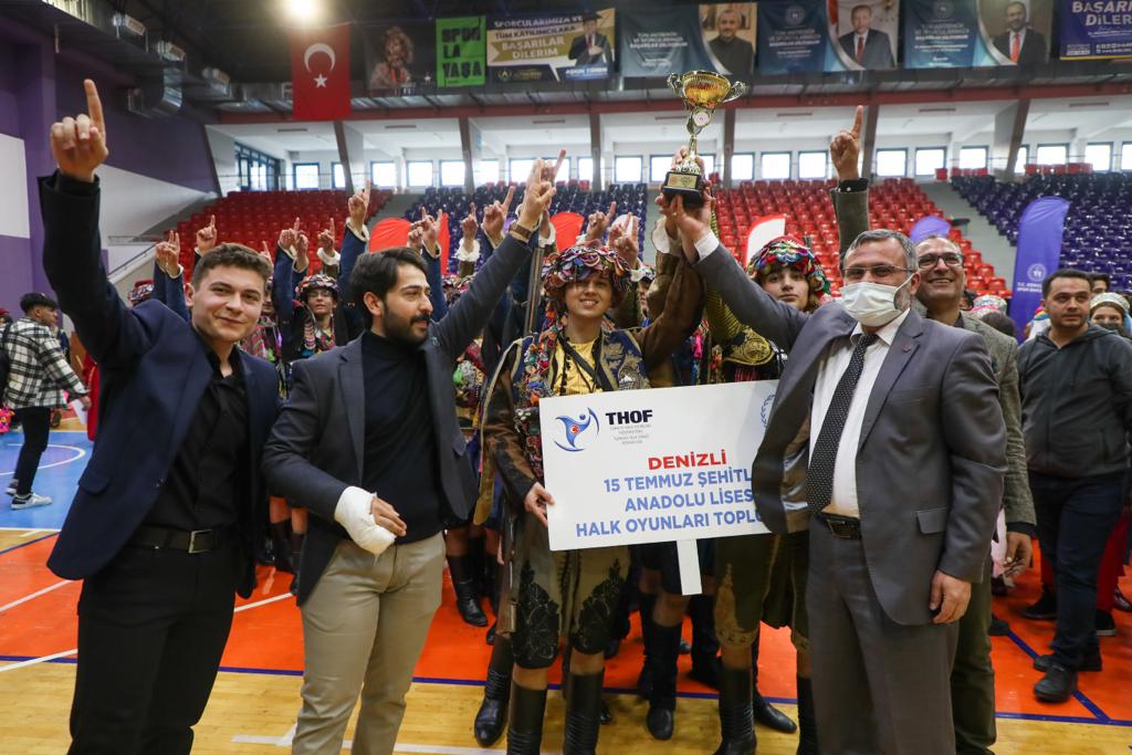 Okul Sporları Halk Oyunları Gençler Türkiye Şampiyonasında,Düzenlemeli Dal Yarışmasında; Denizli, Adana, Artvin, Eskişehir illerinden katılan okullar, Düzenlemesiz Dal Yarışmasında; Gaziantep, Erzurum ve Trabzon illerinden katılan okullar dereceye girdi.