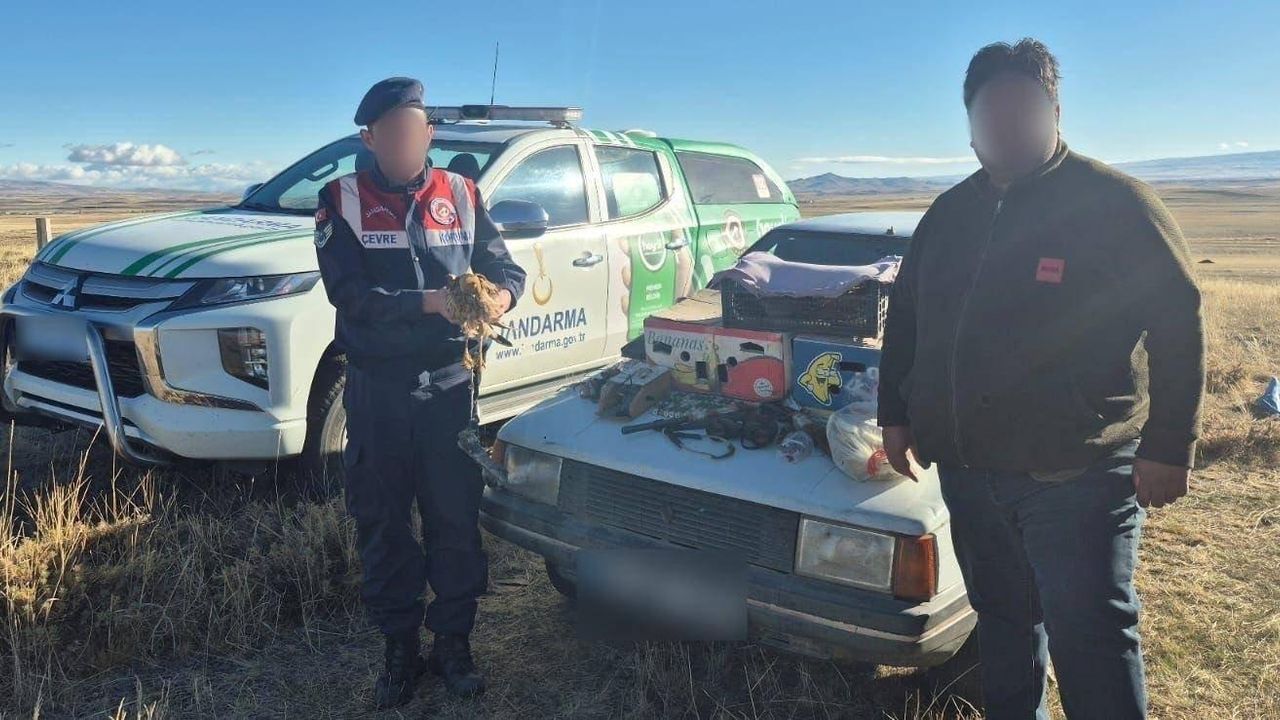 Kars İl Jandarma Komutanlığı tarafından 10 Ekim 2025 tarihinde Selim ilçesine bağlı Akpınar Köyü mevkiinde gerçekleştirilen denetimde, yasadışı yollardan şahin avı yapan iki kişi suçüstü yakalandı.