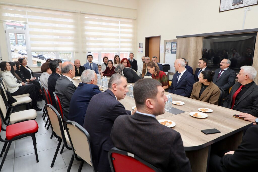 Vali Muammer Erol, karne dağıtımı sonrası protokol üyeleri ile birlikte öğretmenler odasına geçerek, okul idarecileri ve öğretmenlerle bir araya geldi.