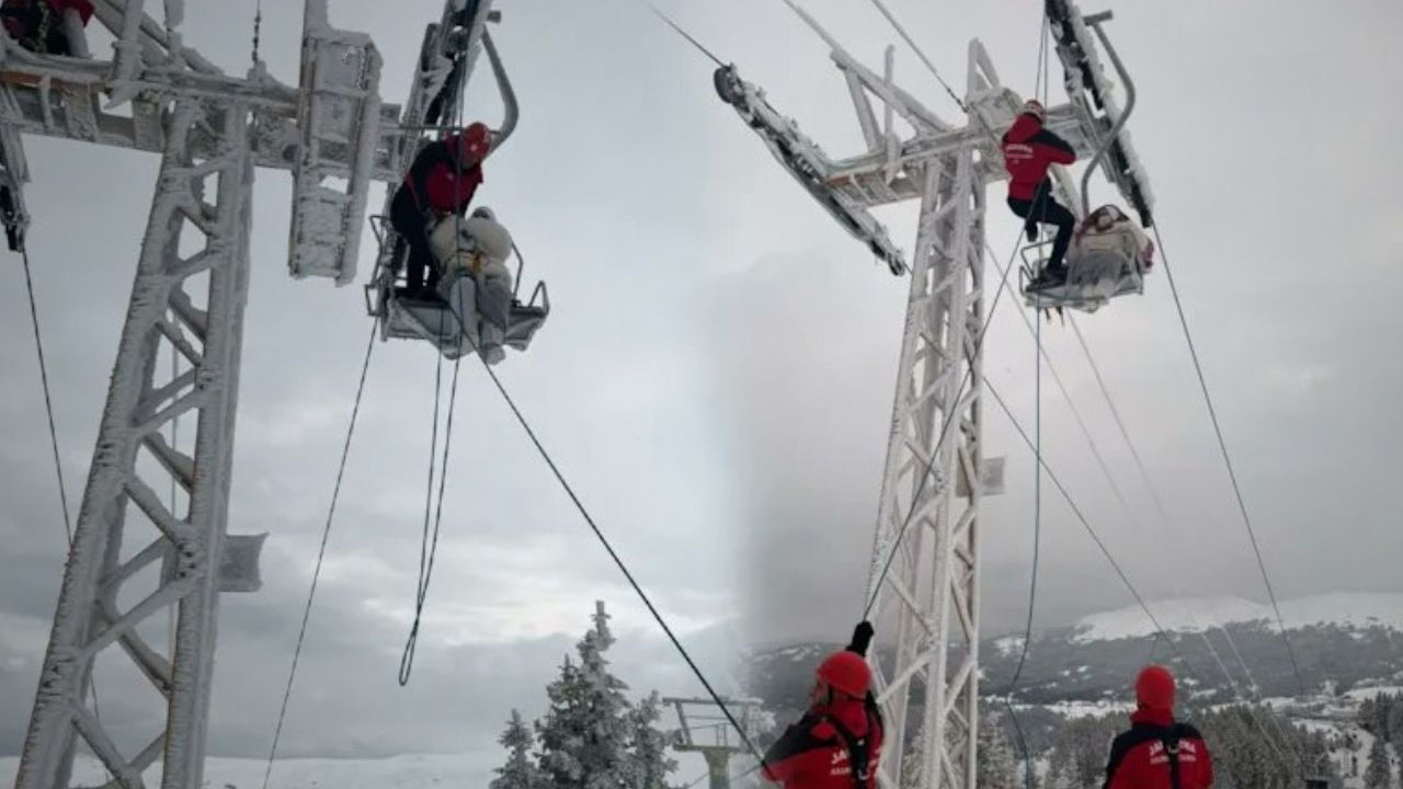 Olay yerine ulaşan ekipler, telesiyejde mahsur kalan vatandaşların güvenli şekilde tahliye edilmesi için çalışmalarını sürdürüyor. Kurtarma faaliyetlerinin kontrollü şekilde devam ettiği öğrenildi.