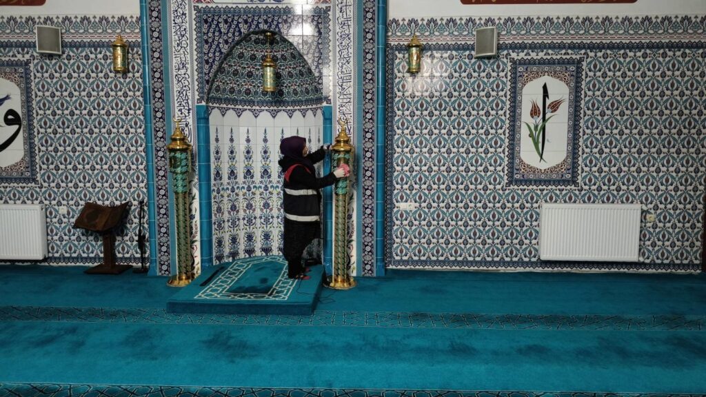 MİHRAPTAN MİNBERE, AVİZELERDEN DIŞ MEKANA KADAR HER YER TİTİZLİKLE TEMİZLENİYOR