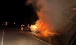 Çorum’da otomobili alev alev yandı