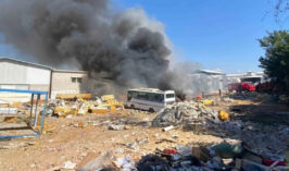 Sanayide çıkan yangında gökyüzünü siyah dumanlar kapladı