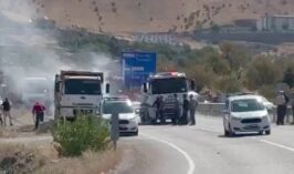 Pertek ilçesinde seyir halindeki kamyon alev aldı