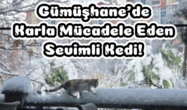 Gümüşhane’de karla mücadele eden sevimli kedi!
